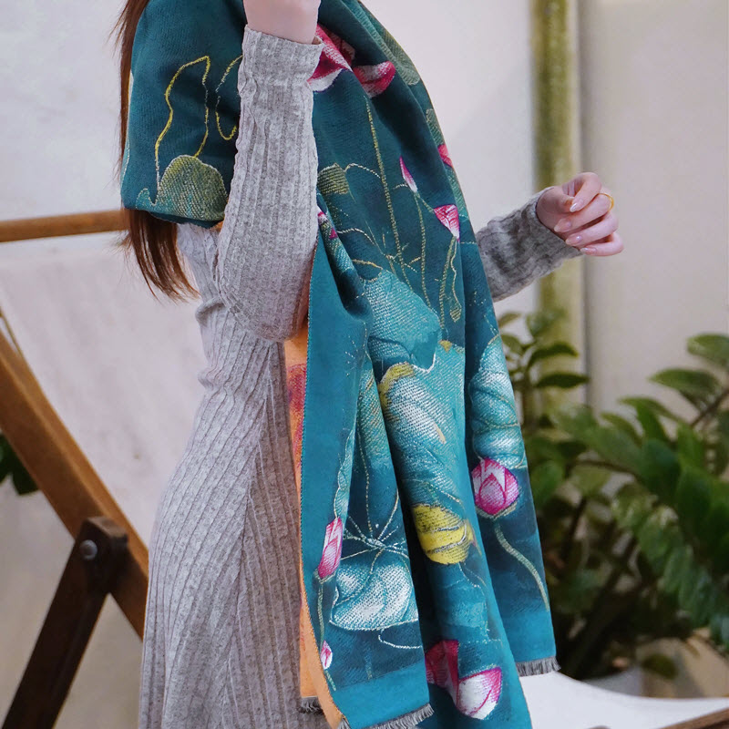 Khăn KQ-WD29 nổi bật với họa tiết hoa và lá sen, mang lại sự tinh tế và nét đẹp tự nhiên cho người sử dụng. Màu sắc hài hòa, dễ dàng kết hợp với nhiều trang phục khác nhau, giúp bạn luôn nổi bật và thu hút ánh nhìn. Đặc biệt, bạn có thể lựa chọn dịch vụ khăn Cashmere Nữ thêu tên, giúp chiếc khăn trở thành món quà độc đáo và đầy cá nhân hóa cho những người bạn yêu thương.